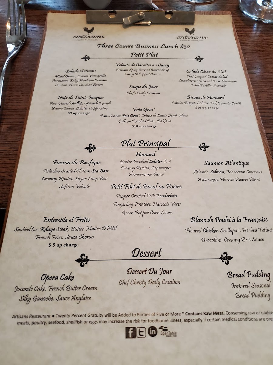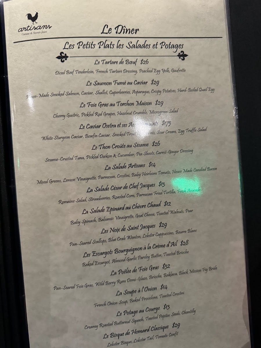 Artisans elegantly combines quality ingredients with exquisite French techniques, ensuring a memorable dining experience that will tantalize your taste buds.